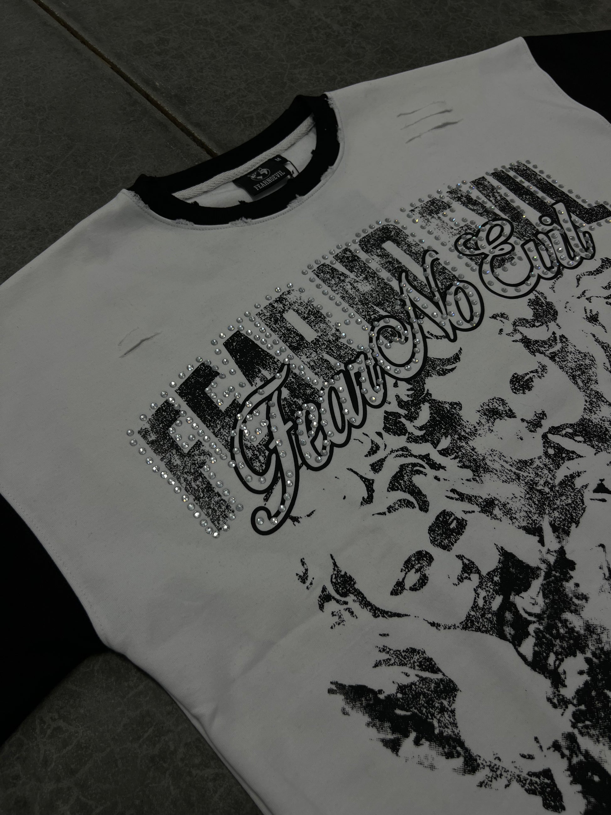 DISTRESSING ON COLLAR AND SHIRT